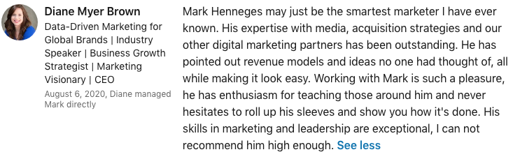 ENDORSEMENTS WHAT PEOPLE WHO HAVE WORKED FOR MARK HAVE TO SAY….. TEAM MEMBERS WHO DIRECTLY WORKED WITH MARK…..